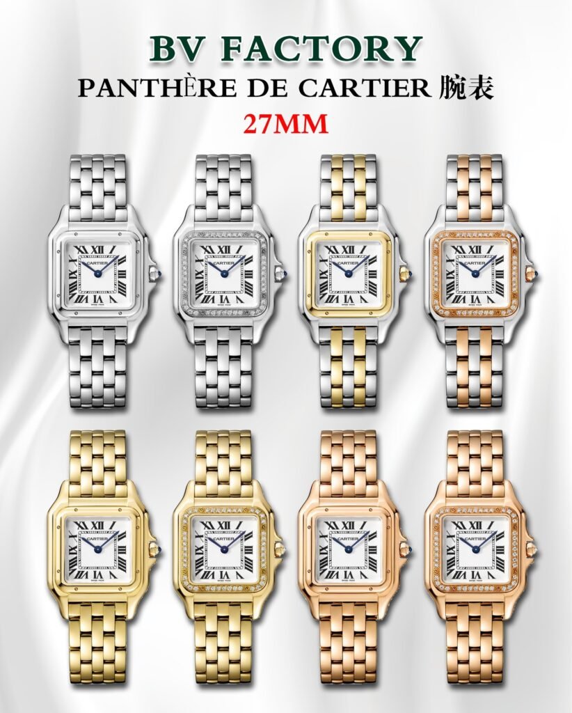 Luxury replica Cartier Panther watch, Swiss movement, stainless steel case and sapphire crystal. Brand: CARTIER SERIES:PANTHERE DE CARTIER Model :WGPN0008 WGPN0009 Gender:MISS Movement: SWISS QUZRTZ Movement Case Size : 22X30MM 27X37MM Factory :BV Factory